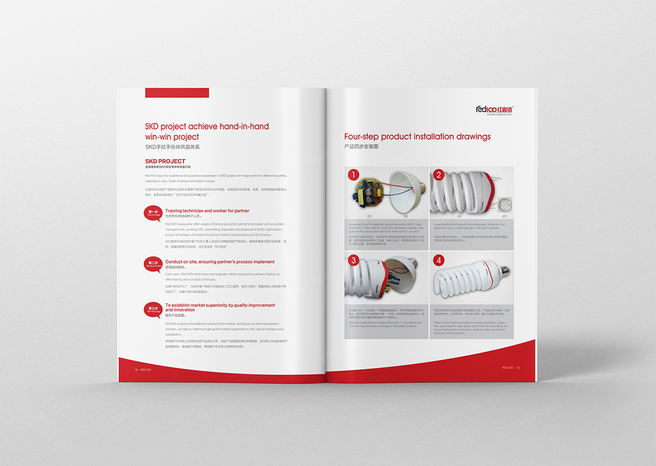 【紅壹佰節(jié)能燈產(chǎn)品畫(huà)冊(cè)設(shè)計(jì)】在理解客戶(hù)的要求之后,進(jìn)行的版面設(shè)計(jì)。早晨設(shè)計(jì)把服務(wù)于張家港,江陰,太倉(cāng),昆山,常熟,靖江,南通,如皋,如東,海門(mén),海安,蘇州,無(wú)錫,宜興樣本畫(huà)客戶(hù)案例進(jìn)行梳理展示,在線(xiàn)發(fā)布讓大家免費(fèi)學(xué)交流。早晨設(shè)計(jì)是高端企業(yè)產(chǎn)品宣傳冊(cè)策劃設(shè)計(jì)和印刷制作的專(zhuān)業(yè)公司。免費(fèi)為企業(yè)提供樣本設(shè)計(jì)咨詢(xún)。
